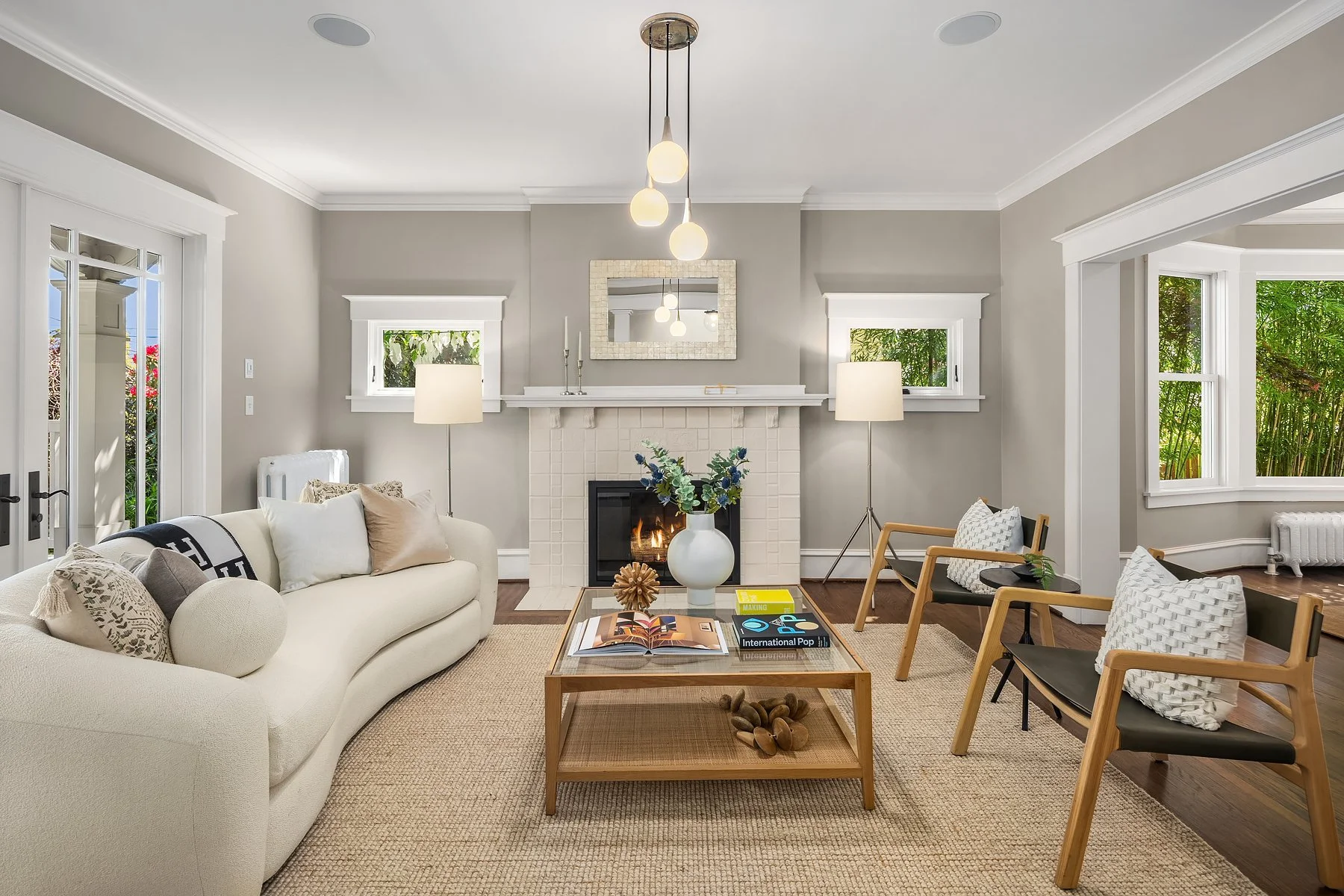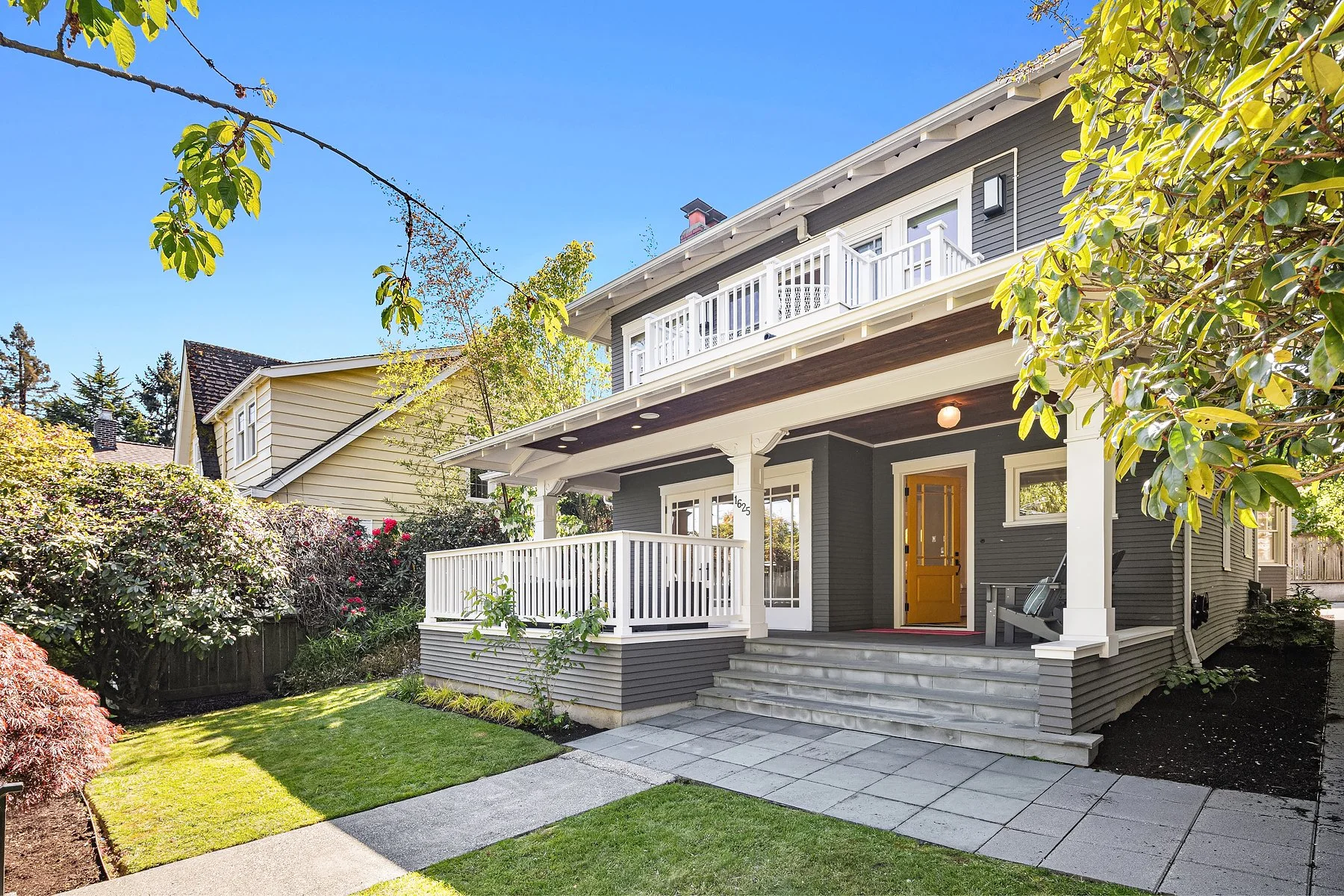 This stunning Madrona home radiates happiness! Perched on a coveted block, this gem has been extensively renovated to perfection! A beautiful fusion of classic & contemporary, impeccably updated, designer finishes throughout & AC. Incredible scale & sparkling Lake Wa views, soaring ceilings & natural light are abundant! French doors open to a private, all-season covered deck, for seamless indoor outdoor living! The large formal living & dining flow to the chef's kitchen & dream great room. 3 bedrooms up, w/ a spacious primary suite & view deck! Private & serene w/lush bamboo & a majestic Japanese Maple. Walk to the magical Madrona village! Unparalleled curb appeal, 1 car garage + 1 off street parking. Paradise found at this Madrona oasis!