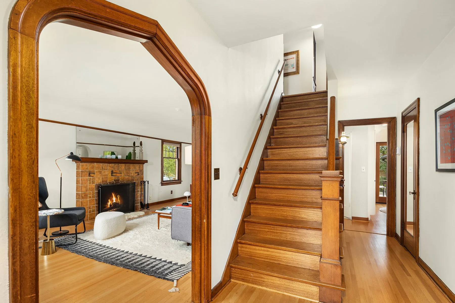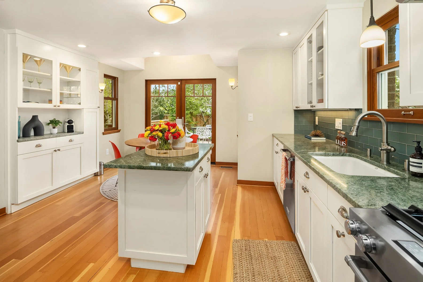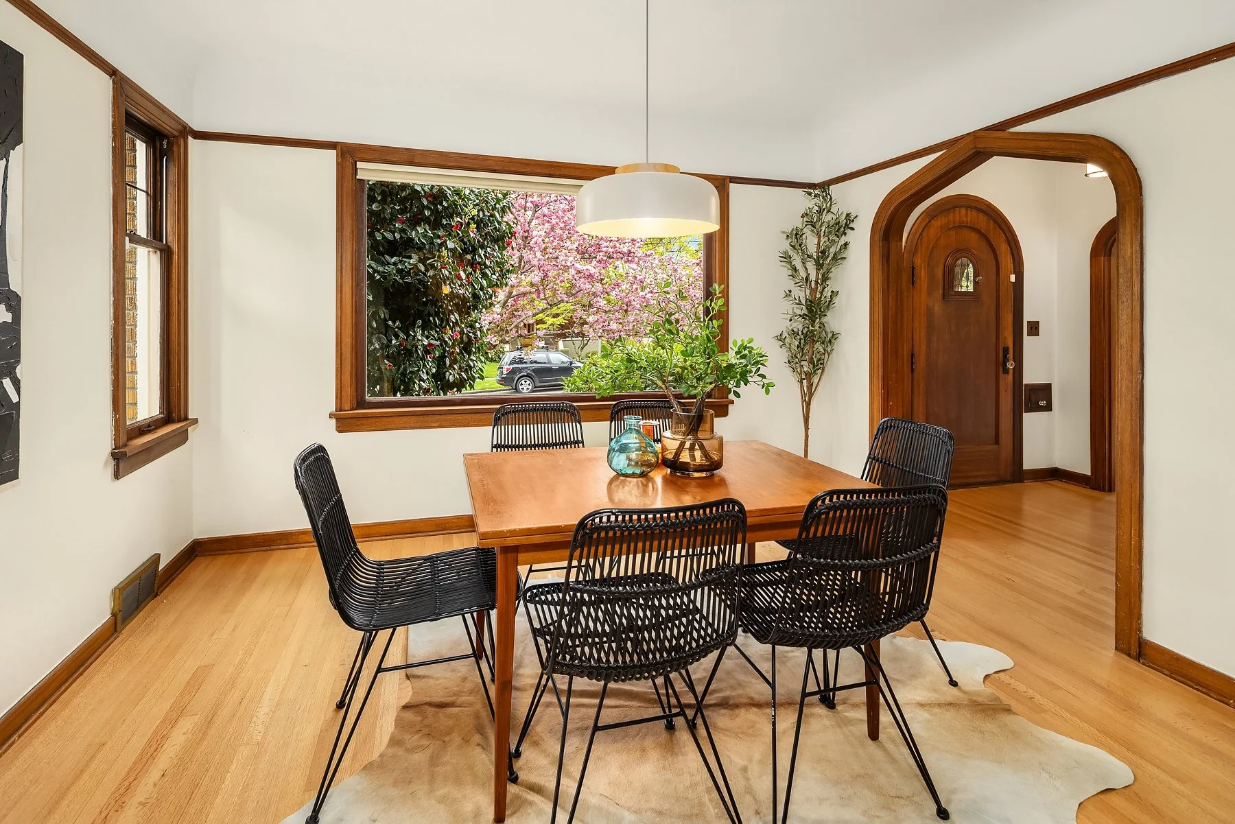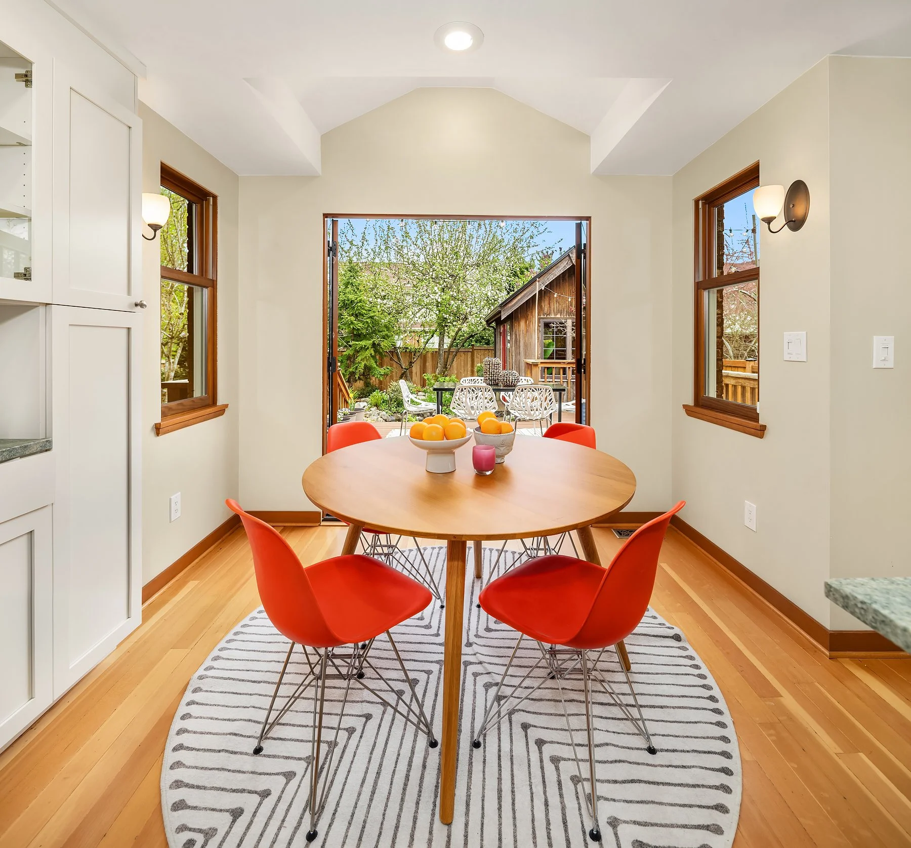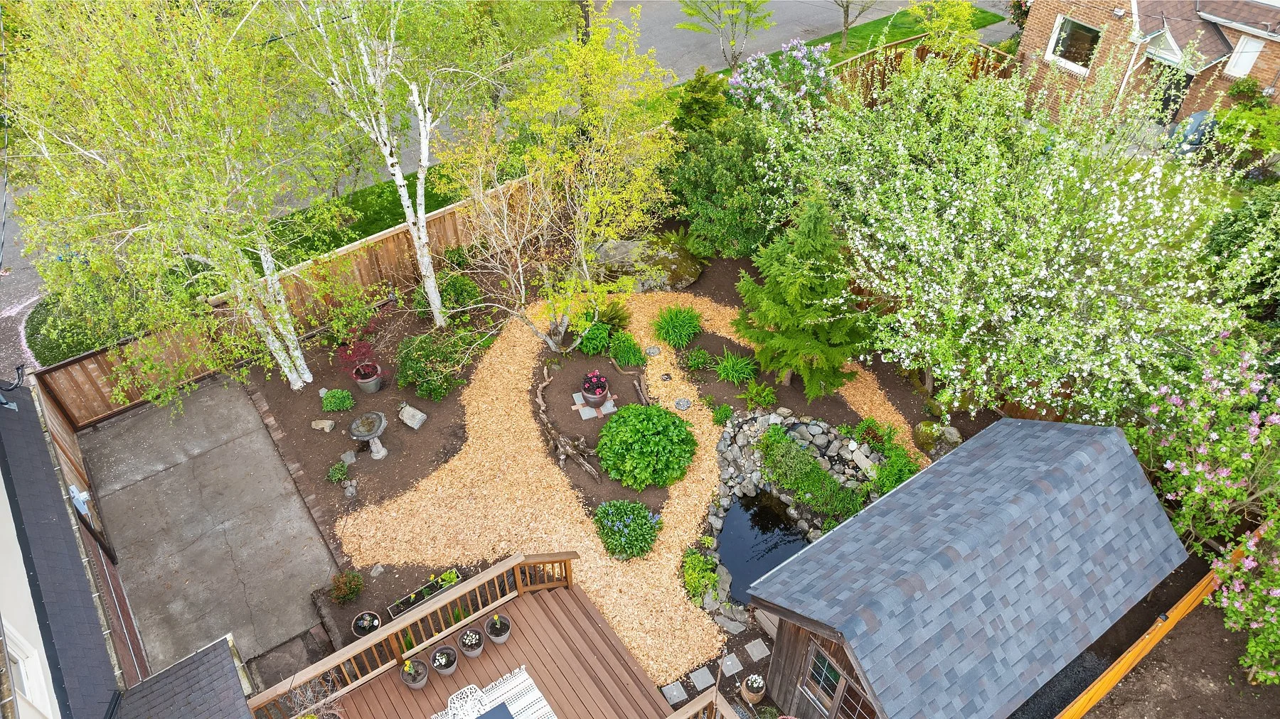 Behold Ravenna’s crown jewel—an exceptional gem w/ storybook curb appeal & a magnetic presence that draws you in. Inside, bright & beautifully curated, sun-drenched living & dining rooms—straight out of Elle Decor—set the tone w/ coved ceilings, rich mahogany millwork & beautifully refinished hardwoods. The sleek, designer kitchen features a sunny breakfast nook, while French doors open wide to an expansive entertaining deck & the magical gardens. Upstairs, three bright & serene bedrooms—including an expansive, sunlit primary—are framed by dreamy cherry blossom outlooks. The lower level offers flexible media, guest, or office space, along w/ laundry, generous storage & a perfect workshop. Updated w/ central AC & off-street parking for everyday ease. The grounds are the heart—the undeniable showstopper. Lush, layered & full of wow factor, w/ gardens, birdbaths & winding paths that create a true in-city sanctuary. Seamless indoor-outdoor living unfolds w/ ease, where days flow outside & evenings glow beneath string lights. A charming detached studio is the cherry on top! Set proudly on a sunny corner lot in one of Ravenna’s most coveted pockets, just moments to cafés, light rail & neighborhood favorites—lovingly treasured by only three families over the past 100 years! This is the one. Updated. Magical. Happy. A true WOW at every turn—w/ the best energy the moment you arrive.