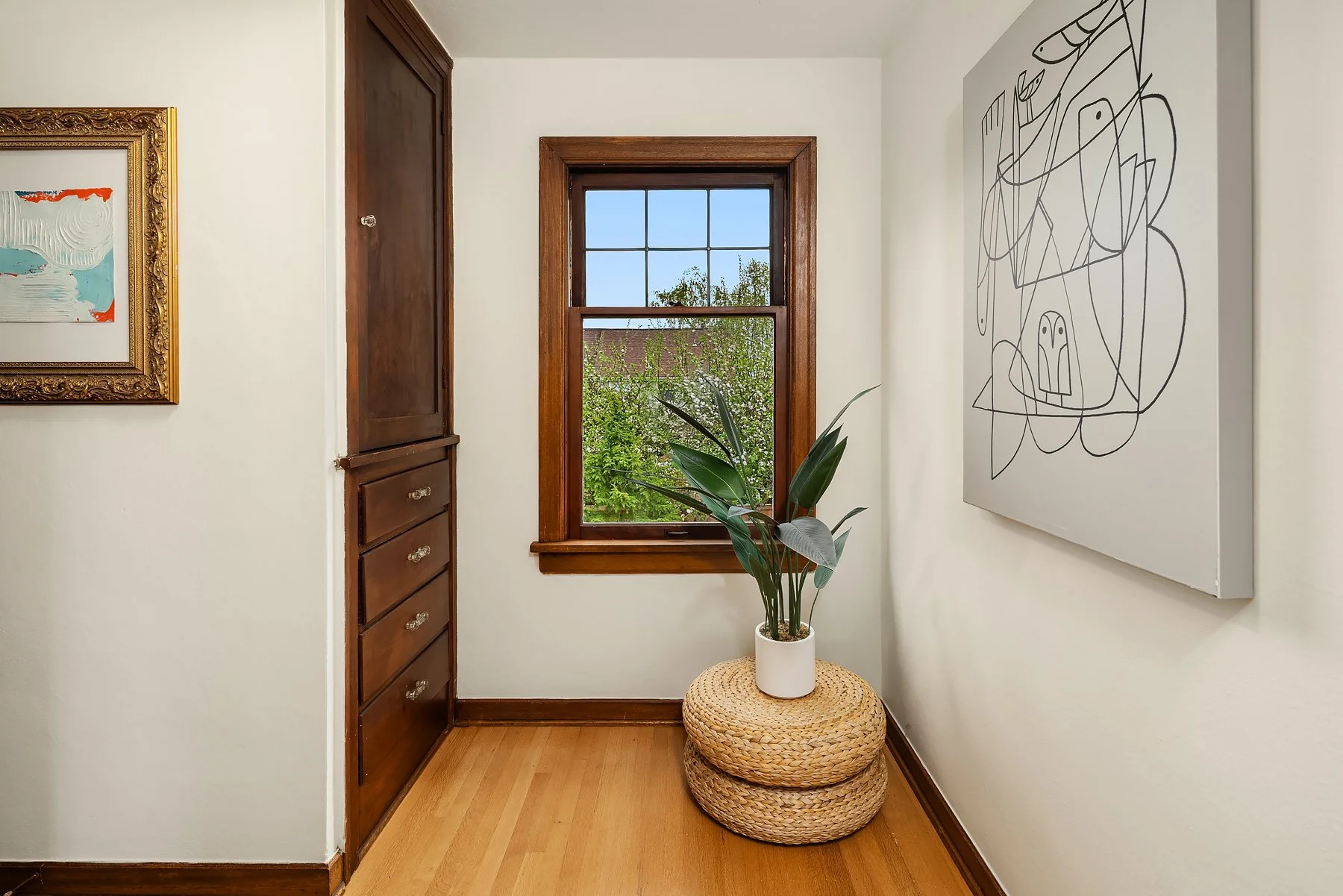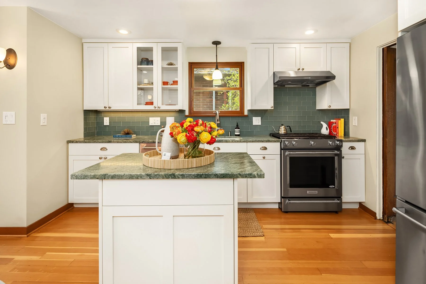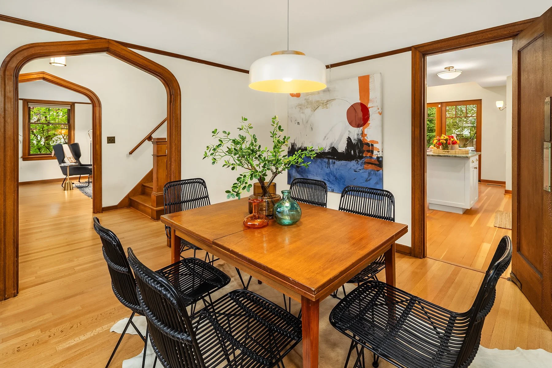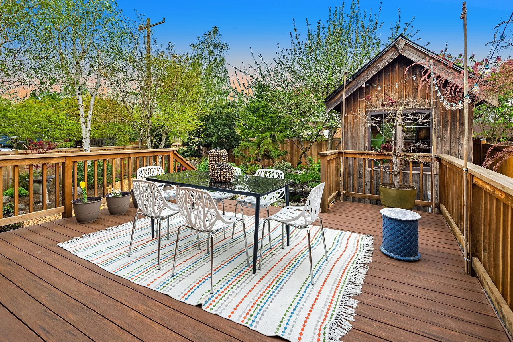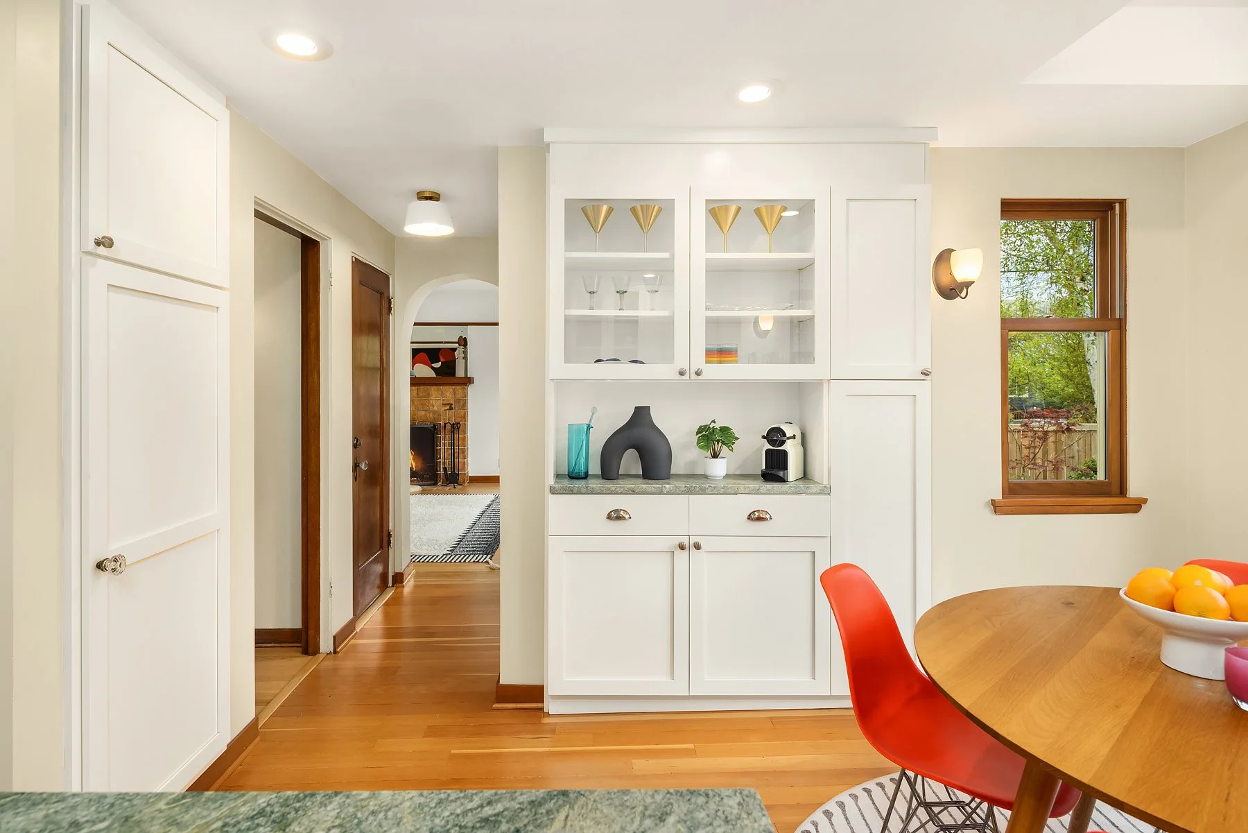 Behold Ravenna’s crown jewel—an exceptional gem w/ storybook curb appeal & a magnetic presence that draws you in. Inside, bright & beautifully curated, sun-drenched living & dining rooms—straight out of Elle Decor—set the tone w/ coved ceilings, rich mahogany millwork & beautifully refinished hardwoods. The sleek, designer kitchen features a sunny breakfast nook, while French doors open wide to an expansive entertaining deck & the magical gardens. Upstairs, three bright & serene bedrooms—including an expansive, sunlit primary—are framed by dreamy cherry blossom outlooks. The lower level offers flexible media, guest, or office space, along w/ laundry, generous storage & a perfect workshop. Updated w/ central AC & off-street parking for everyday ease. The grounds are the heart—the undeniable showstopper. Lush, layered & full of wow factor, w/ gardens, birdbaths & winding paths that create a true in-city sanctuary. Seamless indoor-outdoor living unfolds w/ ease, where days flow outside & evenings glow beneath string lights. A charming detached studio is the cherry on top! Set proudly on a sunny corner lot in one of Ravenna’s most coveted pockets, just moments to cafés, light rail & neighborhood favorites—lovingly treasured by only three families over the past 100 years! This is the one. Updated. Magical. Happy. A true WOW at every turn—w/ the best energy the moment you arrive.